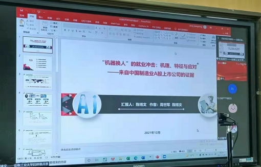 大会从400余篇中英文投稿论文中遴选出117篇高质量论文进入分论坛。我院数量经济学硕士生陈博文与导师周世军的合作论文《“机器换人”的就业冲击:机理、特征与应对——来自中国A股上市公司的证据》入选年会论文。陈博文在分论坛上进行了汇报,得到了专家们的一致肯定,并就汇报论文的有关问题与参会专家进行了深入交流。