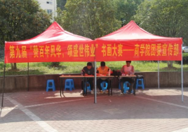 为庆祝中国共产党百年华诞,继承和弘扬中华优秀传统文化,展现学生书画艺术风采,10月25日,商学院在秀山校区第六食堂前广场举办了“赞百年风华,颂盛世伟业”书画大赛。