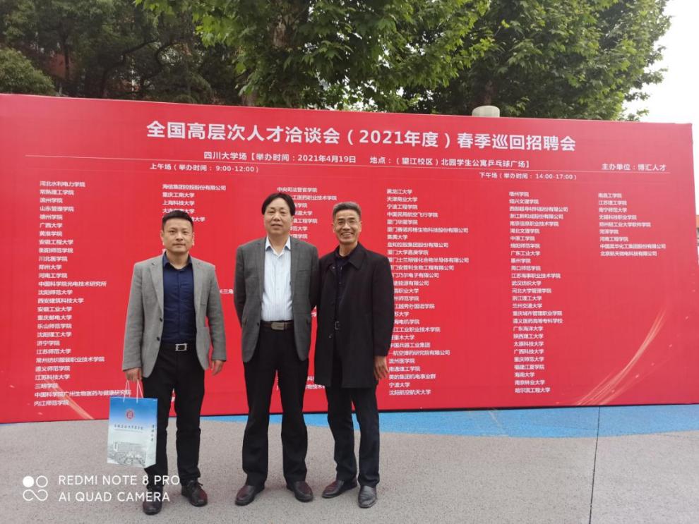4月19日,商学院党委书记洪功翔教授带领金统系黄永兴教授、经济系主任陶善信博士到四川大学参加全国高层次人才洽谈会(2021年度)春季巡回招聘会,并到四川大学商学院、校友企业中国五冶集团有限公司走访交流。