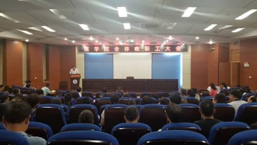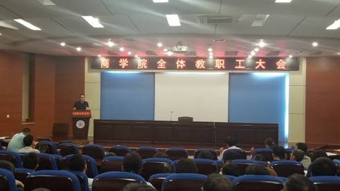 2019年9月9日下午,商学院在秀山校区振华图书馆第一报告厅召开新学期全体教职工大会,商学院全体党政领导班子、教职工参加了本次大会,大会由院党委副书记、副院长张虎主持。