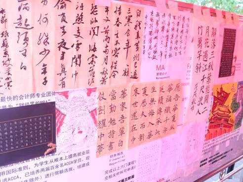 瀚墨行浩色,笔下春秋生。丹青化精魄,风雨大道成。为弘扬中国优秀传统文化,展现当代大学生风采,提高学生综合素质,10月14日,我院在秀山校区六食堂楼下举办了第六届“笔尖论道,翰墨传魂”书画大赛。