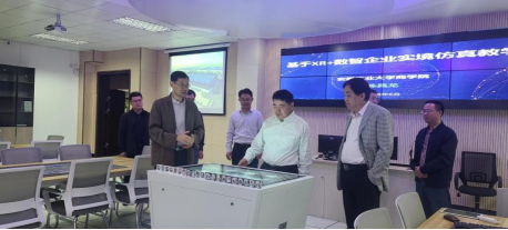陆林一行首先参观了商学院数智企业实境XR虚拟仿真实验室,详细了解了基于XR数智企业实境仿真教学情况和数智时代商科人才培养新思路。