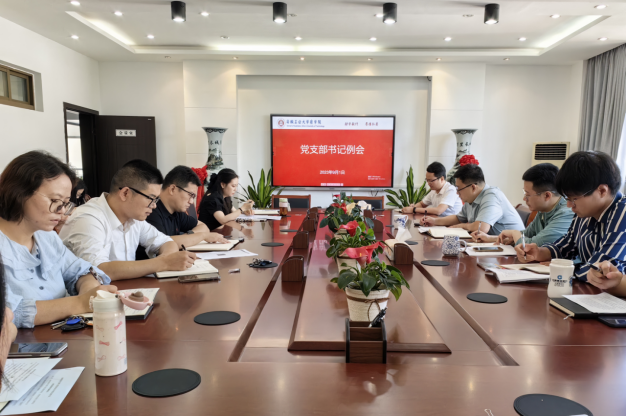 9月1日上午,商学院召开2023年第三次党支部书记例会,全体党支部书记参加会议,会议由院党委书记杜飞主持。