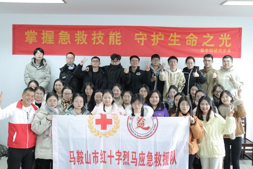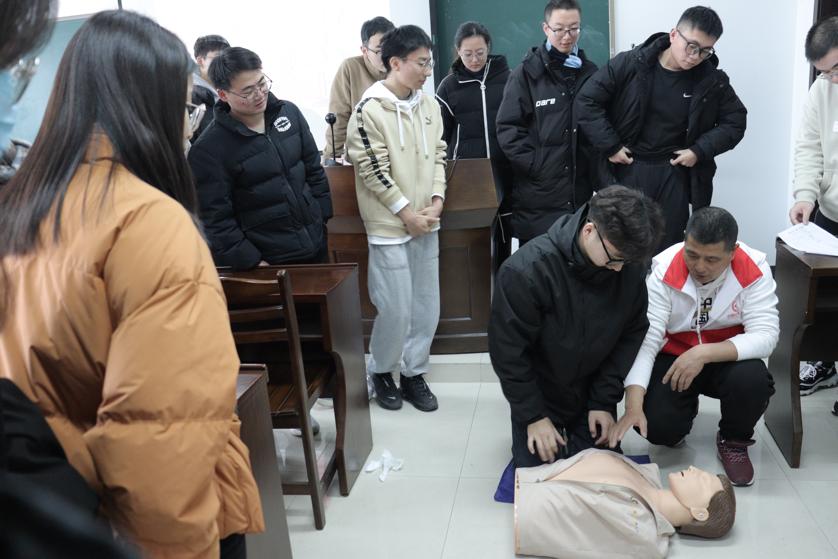 12月19日上午,商学院研究生会于秀山校区汇文楼C407成功举办应急救护培训活动,旨在提高学生急救知识与技能,减少意外伤害发生,保障生命健康与安全。本次培训邀请了马鞍山市红十字会甘国庆老师进行指导,三十余名研究生参加了培训。