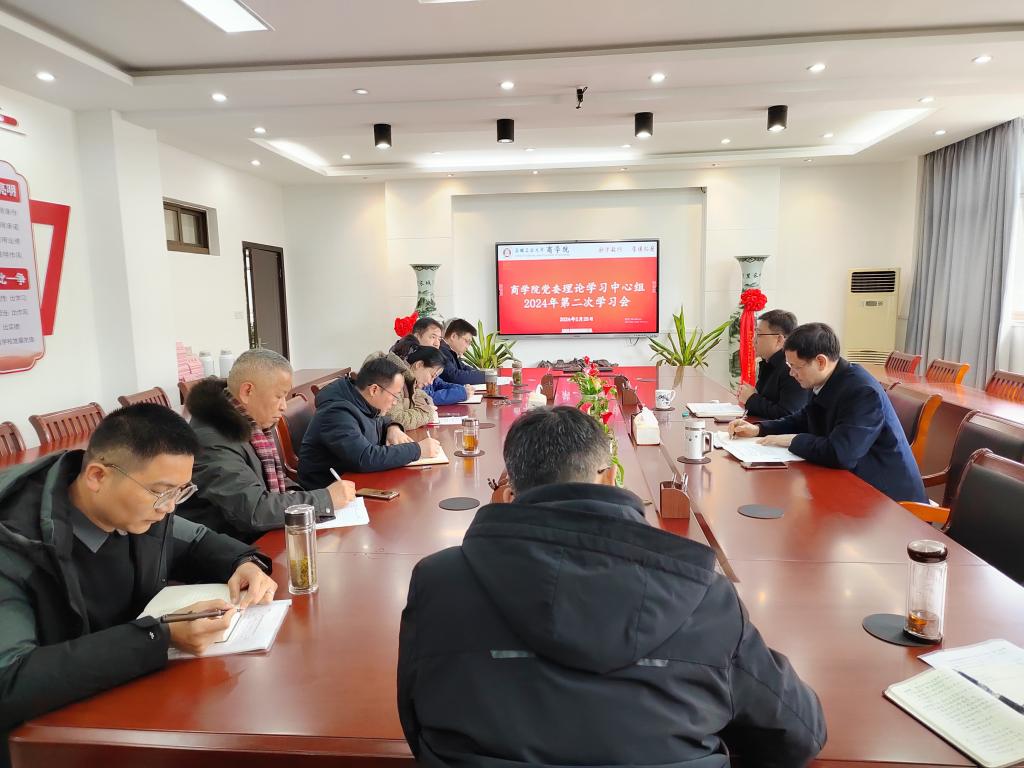 2024年2月25日,商学院党委理论学习中心组召开2024年第二次学习会议,院领导、党委委员、正处级组织员、副处级辅导员、办公室主任、党委秘书、团委书记等参加了会议。院党委书记杜飞主持会议并讲话。