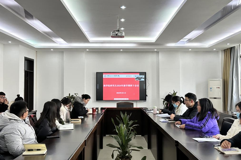 3月1日下午,商学院在秀山校区汇文楼C402召开研究生新学期安全工作会暨思想动态调研工作。研究生辅导员王琴老师、郝乐老师及各年级研究生班长、团支书参加了此次会议。会议由辅导员王琴主持。