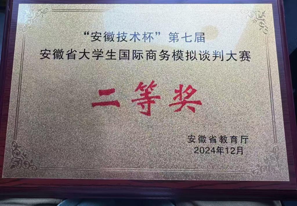 “安徽技术杯”第七届安徽省大学生国际商务模拟谈判大赛在安徽大学落下帷幕。商学院两支参赛队分别荣获二等奖、三等奖。由徐浩越、邓庆老师指导,吴逸峰、桂好好、水家星、刘思琪、唐艺青、桂语彤等学生组成的“立大功汪汪队”队荣获省赛二等奖;由徐卫章、黄小峰老师指导,孙乐、吕思佳、董鑫蕊、陈玉芬、许颖、岳若晴等学生组成的“Starwin”队荣获省赛三等奖。