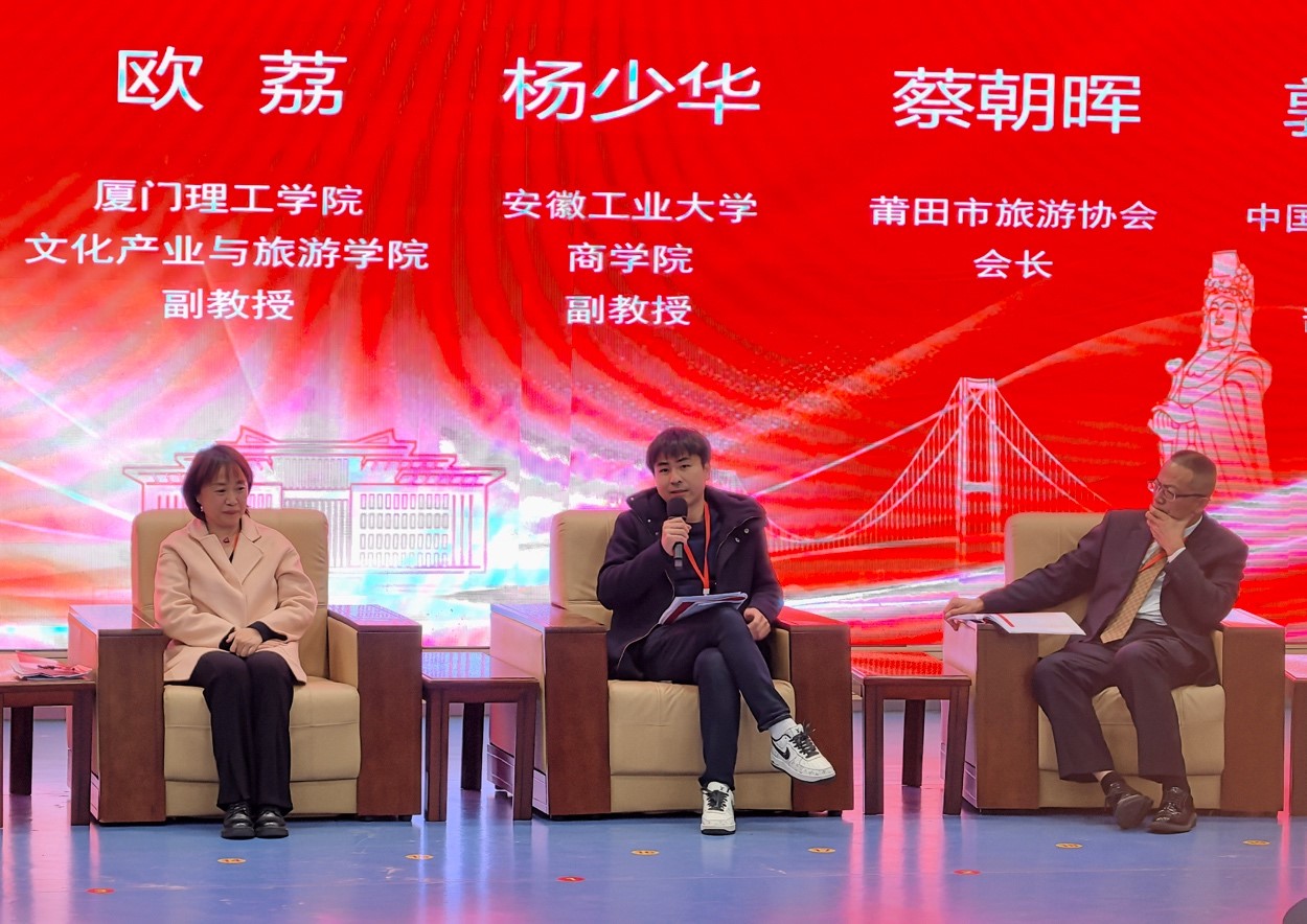 12月15日,由莆田学院、全国应用型课程建设联盟旅游专业委员会、福建省旅游协会乡村旅游分会联合主办,《旅游科学》期刊协办的“乡村文旅经济高质量发展暨现代产业学院建设”学术研讨会圆满召开。会议邀请了南京大学、暨南大学、厦门大学、上海师范大学、华侨大学、重庆交通大学等高校的多位知名专家学者,分享了乡村文旅经济高质量发展的创新路径,以及现代产业学院建设的实践经验与未来发展方向。我院杨少华副教授应邀参加圆桌论坛并作主题发言。