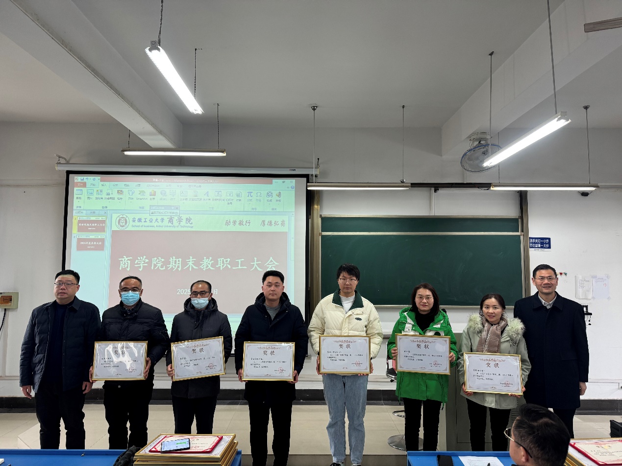 2025年1月9日下午,商学院在汇文楼D507召开2024-2025学年第一学期期末教职工大会。全院教职工参加了会议,会议由院党委副书记、院纪委书记、副院长蒋磊主持。