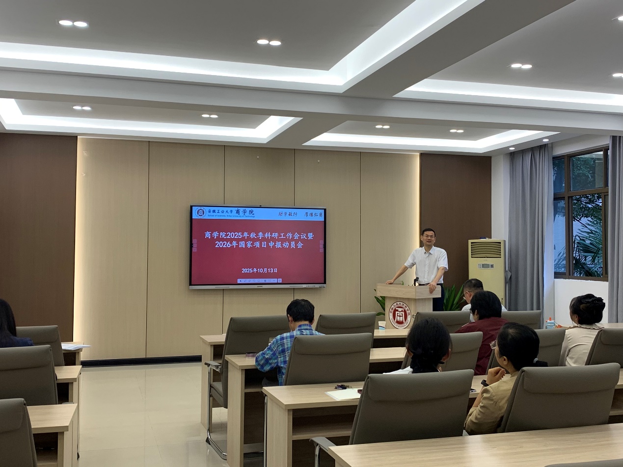 吴宣够充分肯定了学院近年来在科研项目申报、成果产出及社会服务等方面取得的成绩,同时深入分析了省内兄弟高校在高水平科研项目立项、科研获奖、平台建设等方面的情况。他指出,商学院科研工作总体呈稳步上升态势,可在高层次人才培养、国家重大项目获批、标志性成果培育等方面持续发力,建议学院进一步凝练学科方向,整合优势资源,激发创新活力,为学校整体科研实力的提升贡献更大力量。