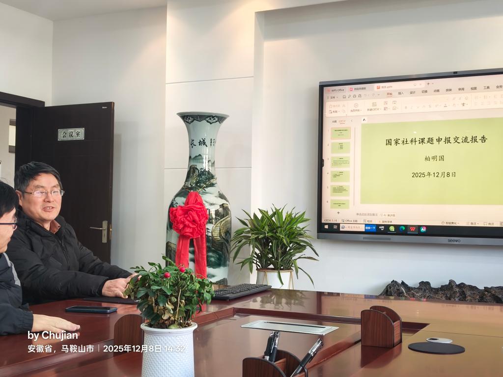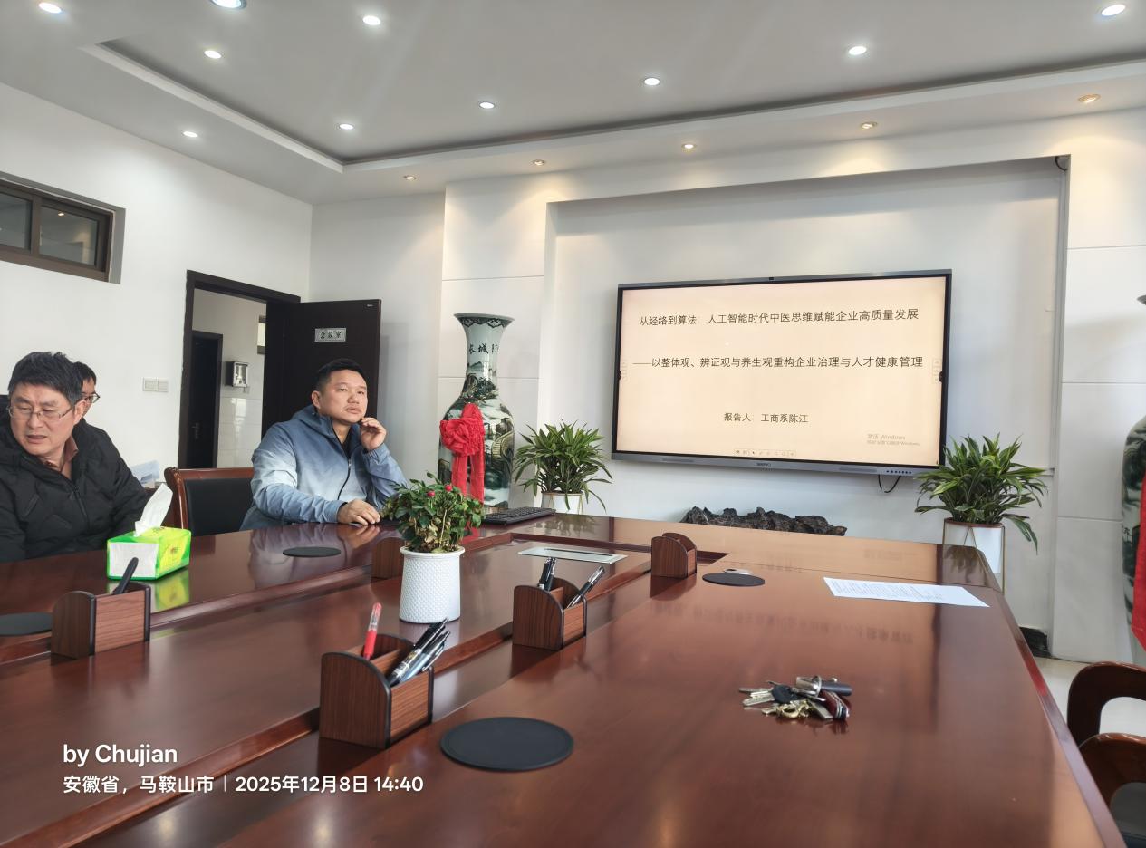随后,柏明国副教授以《国家社科课题申报交流报告》为题,系统介绍了国家社科基金项目的选题逻辑、论证思路与申报要点;陈江副教授作了《从经络到算法:人工智能时代中医思维赋能企业高质量发展——以整体观、辩证观与养生观重构企业治理与人才健康管理》的专题报告,从跨学科视角阐释了中医思维与人工智能融合对企业治理创新的启示。两位报告人围绕科研选题、研究设计与申报策略展开深入交流,对教师申报科研项目和硕士研究生论文选题提供了重要指导。