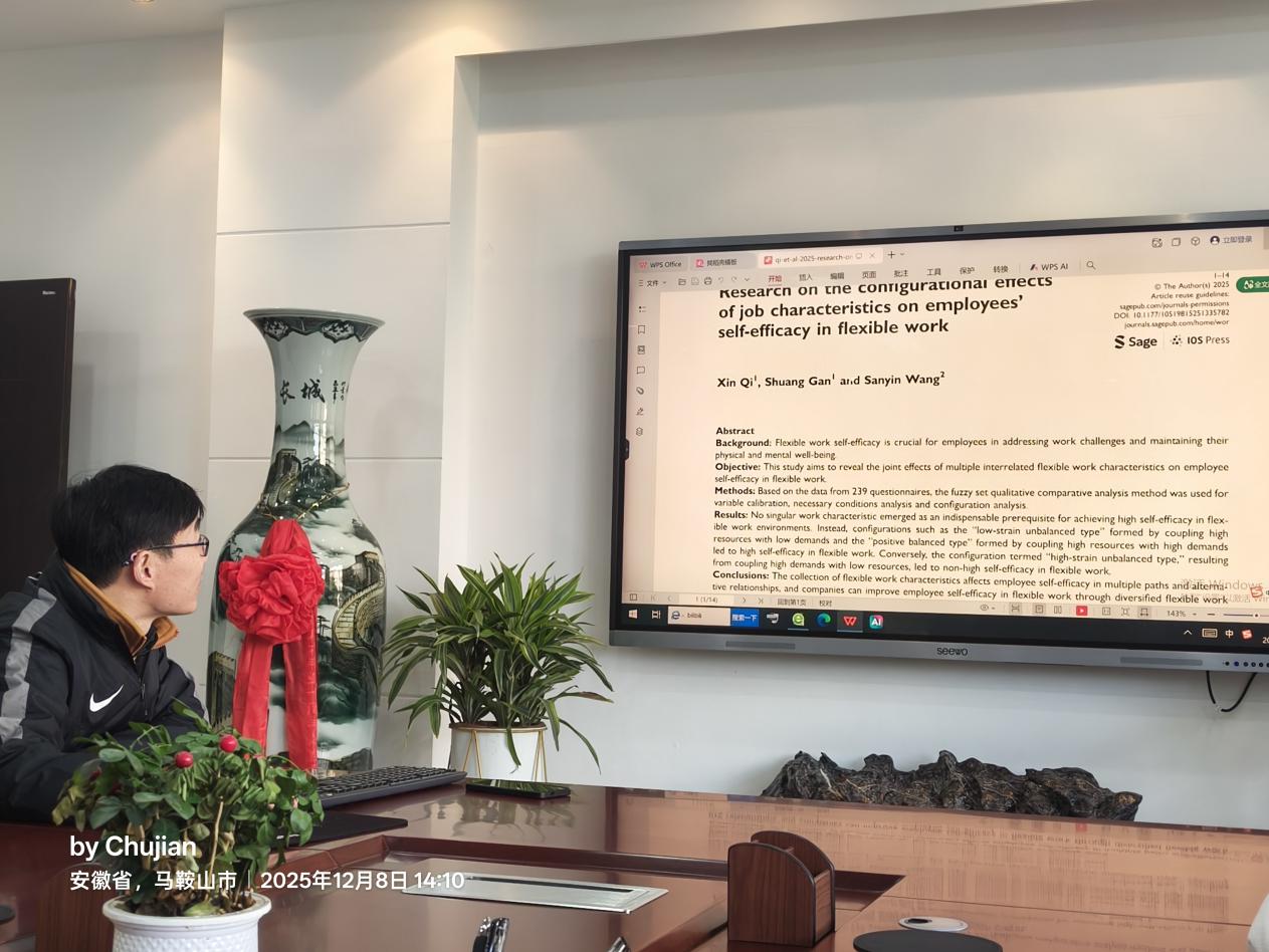 在专题报告环节,正高级实验师齐昕做了题为《Research on the configurational effects of job characteristics on employees’self-efficacy in flexible work》的学术报告,张军教授围绕《基于在线社区的用企互动性共创的创新效应与过程——以HarmonyOS在线社区为例》进行分享。两位专家还结合自身研究经验,就学术论文的构思、理论创新和写作规范进行了深入讲解与讨论,为在场教师与研究生提供了宝贵启示。