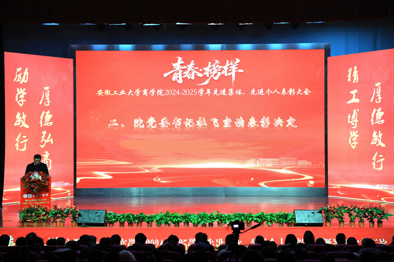 院党委书记杜飞宣读了商学院2024—2025学年先进集体、先进个人的表彰决定,他对青年学子提出了三点希望:一是要明德修身,筑牢品德之基,做到明大德、守公德、严私德,做到心有所畏、言有所戒、行有所止;二是要刻苦求学,锻造过硬本领,唯有向学、善学,才能积累开创未来、参与竞争的能力本领;三是要胸怀家国,逐梦中华复兴,要把自己的理想同国家的前途、把自己的人生同民族的命运紧密联系在一起,扎根人民,奉献国家。
