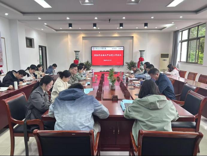 4月14日上午,商学校召开2026年全面从严治党工作会议。院党委副书记、院长章铁生,院党委副书记、纪委书记、副院长蒋磊,副院长周世军、李伟军出席会议。会议由蒋磊主持。