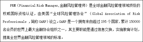 是金融界的顶级证书之一,含金量高,全球风险管理者和各大雇主已将FRM头衔作为衡量金融风险管理人员专业水平和诚信度的标准。
