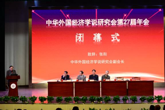 闭幕式由学会副会长胡乐明教授主持。学会副会长、四川大学张衔教授在闭幕词中首先感谢了安徽工业大学提供的细致安排和商学院周到的会务服务。他指出,与会代表们的发言讨论学理清晰、见解深刻、观点新颖、论述精彩,交流了思想、增进了共识、深化了研究,为年会奉献一场难得的学术盛宴。