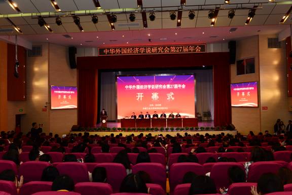 开幕式上,刘新跃教授首先致欢迎辞。他表示,党的十九届四中全会刚刚闭幕,今年又恰逢中华外国经济学说研究会成立40周年,学校能够共同主办本次年会,充分体现了学会对学校相关学科的信任与支持。他代表全校师生向年会的召开表示热烈祝贺,并向到场的专家学者介绍了我校以及商学院的发展历史、办学定位、学科建设和人才培养等情况。他指出,党的十九届四中全会作出的《关于坚持和完善中国特色社会主义制度、推进国家治理体系和治理能力现代化若干重大问题的决定》明确提出,社会主义基本经济制度,既体现了社会主义制度优越性,又同我国社会主义初级阶段社会生产力发展水平相适应,是党和人民的伟大创造。习近平总书记在第二届中国国际进口博览会上关于经济全球化和中国持续推进更高水平的对外开放的“三点倡议”和“五点主张”,为我们开展中国特色社会主义政治经济学研究提供了明确的方向与遵循。他期待与会代表能够在党的十九届四中全会精神指引下,以广阔的视野、深厚的情怀、新颖的思维和超前的视角,加强对外国经济学说研究的深度,为我国马克思主义经济学理论与经济社会发展建言献策。