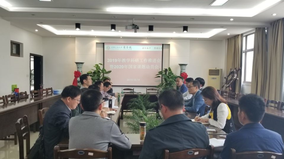 10月14日下午,商学院召开2019年“不忘育人初心、牢记教师使命”主题教学科研工作推进会暨2020年国家课题动员会。学院全体党政班子成员和各系主任参加了会议。此次会议是贯彻落实校第四次党代会精神、推深做实“不忘初心、牢记使命”主题教育而召开的一次重要会议,也是实现“大力抓党建、全面促发展”目标要求的工作布置会、动员会、推进会。