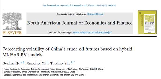 商学院胡根华副教授在《The North American Journal of Economics and Finance》上发表我国原油期货市场波动预测的最新研究成果。该期刊是经济学和商业与金融学领域的国际知名期刊,2023-2024年最新影响因子3.8,在WOS期刊分区中为SSCI一区期刊,金融学领域排名38/233,经济学领域排名84/600,在ABS二类期刊、ABDC国际期刊排名B类。商学院胡根华副教授为第一作者,我校为第一单位,通讯作者为商学院朱婷婷副教授。
