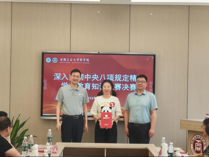 竞赛分为必答题、抢答题、风险题三个环节,内容涵盖中央八项规定精神的具体要求、典型案例分析及作风建设实践路径等。赛场上,各参赛队伍精神饱满、反应迅速,必答题环节展现扎实的知识储备,抢答题环节上演“手速与脑力”的双重较量,风险题环节则考验团队共同协作与担当。经过激烈角逐,工商系党支部代表队凭借扎实的理论功底和默契的团队协作荣获一等奖,办公室党支部、会计系党支部代表队获得二等奖,营销系党支部、经济系党支部、金统系党支部、国贸系党支部代表队获得三等奖。