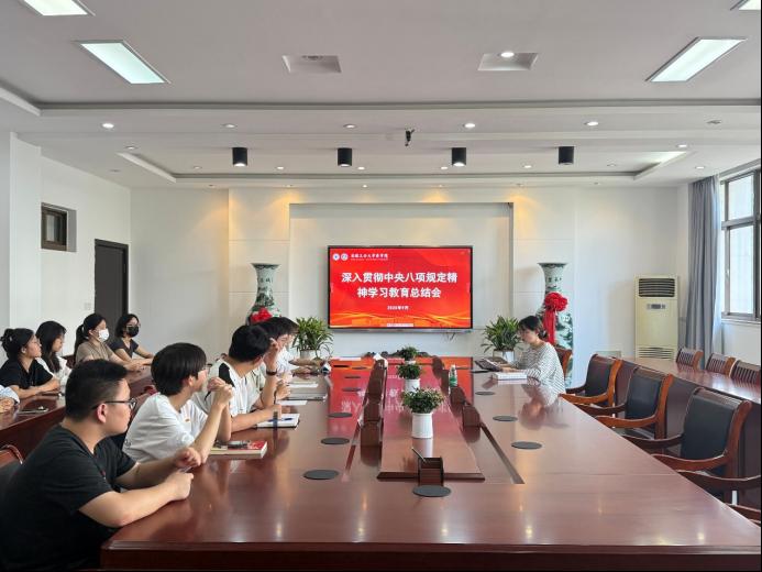 支部将以此次总结会议为新的起点,把深入贯彻中央八项规定精神学习教育贯穿党员教育管理全过程,切实以优良党风带动学风、促进行风,为学院人才培养与高质量发展注入“红色动能”。(撰稿:杨珺 审稿:肖梦雨 李曼 蒋磊)