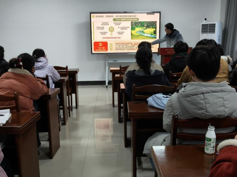 在宣讲过程中,徐韬结合党的二十届四中全会精神及“十五五”规划建议,解读了“碳达峰、碳中和”目标的战略意义,强调其已从环保任务升维为牵引经济社会高质量发展全局的核心战略。随后,通过清晰的时间线梳理了中国在国际气候治理中的坚定承诺与务实行动,展示了我国在能源转型、低碳交通、节能增效等领域取得的显著成就。最后结合宿舍节电、低碳出行、绿色消费、垃圾分类等日常场景,提出了具体可行的低碳行为建议。徐韬号召全体学生代表充分发挥党员先锋模范作用,将绿色理念内化于心、外化于行,从身边小事做起,积极传播绿色理念,躬身践行低碳生活,共同为美丽中国建设贡献青春力量。