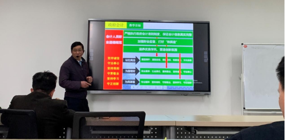 陈昌龙从“坚持准则 守正创新—基于以学生发展为中心的政府会计课程思政创新”和“加强财会监督 打好‘铁算盘’—政府会计课程思政案例设计”两个角度对《政府会计》进行两节思政课展示。他强调教学目标需要站位高远、为国理财、为民谋福,以三维重构和多元共建的方式诠释课程教学内容,培养学生专业素质的同时,也增强了其制度自信和文化自信。