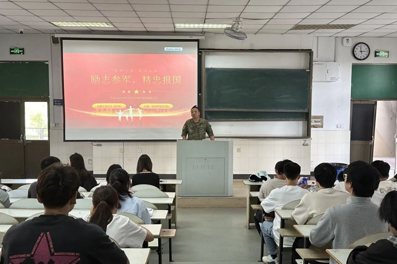 会上,嵇虎详细介绍了征兵工作的各个环节,包括入伍要求、入伍流程、报名方式以及优待政策等,尤其重点强调了应届毕业生入伍期间的经济福利及退伍后在学业、经济及就业上的各项优抚政策。嵇老师鼓励学生在身体素质允许的前提下积极响应国家号召,建功立业、保卫祖国,为强国强军添砖加瓦。