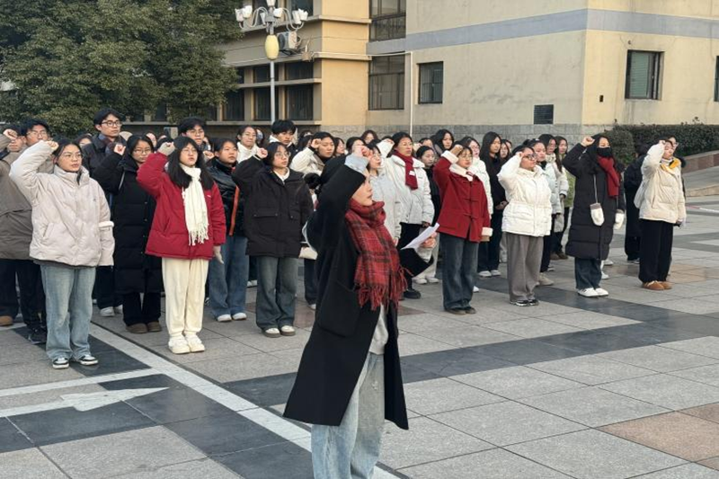 1月1日,我校在秀山校区主教学楼广场举行“弘扬爱国志 奋进新征程”元旦主题升旗仪式,校团委和安全保卫部相关负责同志,商学院团委负责人,校国旗护卫队,2024年新发展的学生预备党员代表、团员代表及各年级学生代表等200余人参加了本次活动。活动由商学院团委承办。