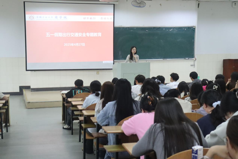 为切实保障学生假期安全,强化安全责任意识,确保同学们能够平安、健康、快乐、充实地度过“五一”假期。4月27日下午,商学院在秀山校区东教一阶201召开研究生“五一”假期安全教育年级会。会议由辅导员郝乐老师主持,全体研究生参加。