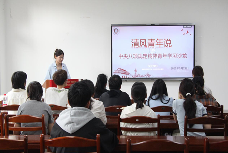为深入解读中央八项规定精神,通过结合校园实际生活,探讨青年如何践行廉洁自律,将党的纪律要求转化为行动共识。5月21日下午,商学院于秀山校区汇文楼B116举办“清风青年说——商学院中央八项规定精神青年学习沙龙”活动。商学院团委老师、学生干部、正式党员及入党积极分子共30余人参与,现场气氛热烈,互动频繁。