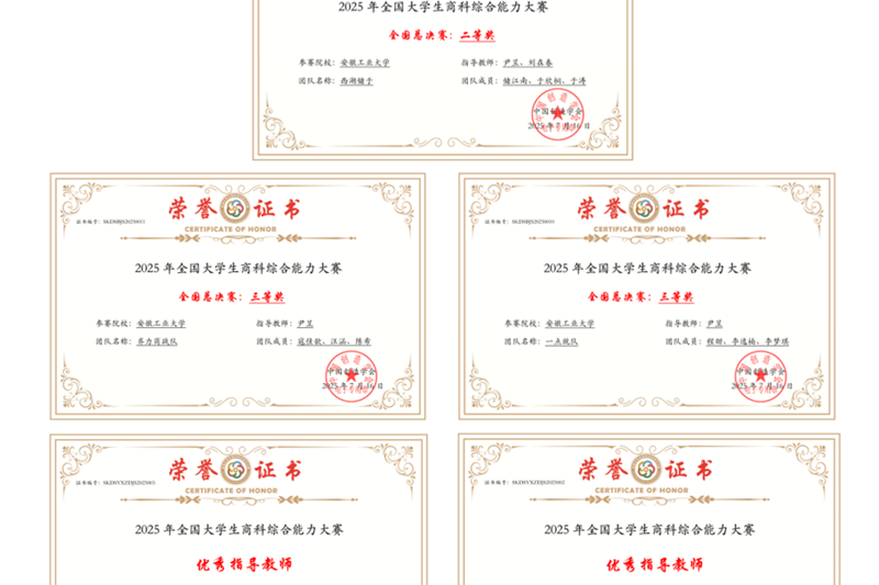 此次比赛取得佳绩,既是对学生专业能力的肯定,更是学院深化“以赛促学、以赛促创”育人理念的生动实践,彰显了培养契合新时代商业发展需求的高素质复合型商科人才的显著成效。参赛同时为我校与全国高校搭建了商科教育交流平台,未来商学院将继续以赛事为抓手,提升人才培养质量,为数字经济时代培育更多优秀商科人才。(撰稿:储江南 汪凡刘潇涵 审核:王天蓝 刘在春 蒋磊)