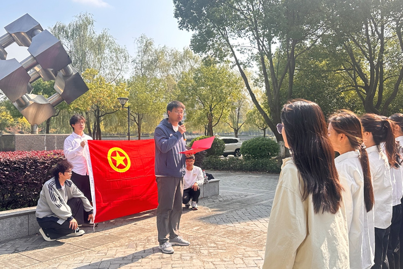 为全面学习贯彻党的二十届四中全会精神,进一步激发青年爱国热情、凝聚青年奋斗力量,商学院团委组织部于10月28日在秀山校区汇文楼前,举行“奋进强国征程,续写青春荣光”入团仪式。商学院团委副书记刘在春、张舒出席活动,38名新发展团员及部分学生代表参加仪式。