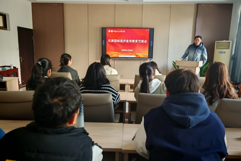 为深化民族团结进步教育,铸牢中华民族共同体意识,商学院于11月28日上午在B204会议室成功举办了民族团结进步宣传教育活动。本次活动由商学院关工委办公室副主任、辅导员徐韬老师主持,学院少数民族学生与汉族学生代表参加了活动。