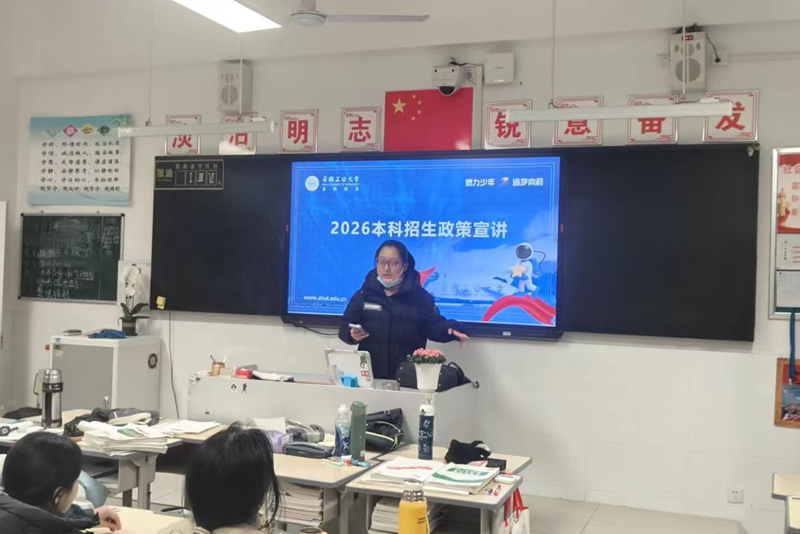 夏玉涵同学结合自身保研经历,分享了在安徽工业大学的学习成长历程,阐释了学校严谨治学的教学氛围与因材施教的人才培养模式,并通过列举了多位优秀校友典型事迹,全面展现了学校育人成果与办学实力。在经验分享过程中,让在场高三学子真切感受工大深厚的学术底蕴与蓬勃的发展活力,并就备考方法、专业选择及升学规划等问题进行逐一解答,进一步激发了同学们对安徽工业大学的向往与憧憬。