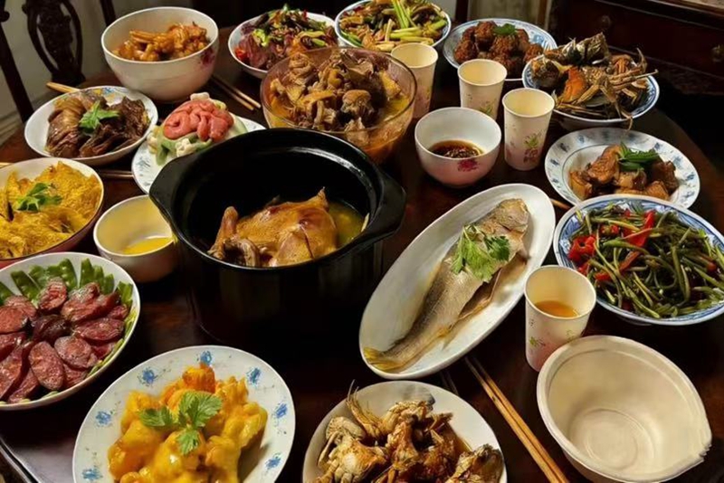 除夕,皖冀两地的年夜饭成为探索饮食文化的核心场景。安徽蚌埠乡村的木桌上,红烧鱼象征“年年有余”,金黄丸子寓意“团团圆圆”,满席菜品传承着皖北“八大碗”的底蕴。河北邢台的家中,饺子是主角,猪肉白菜馅象征“百财”,韭菜馅寓意“长长久久”,一家人围坐和面、擀皮、包馅。两地年夜饭虽有“丰盛满席”与“团圆简约”的差异,却都以“团圆”为不变底色,一顿饭吃的是家乡味,叙的是骨肉情。团队还深入访谈家乡长辈,聆听年味变迁。安徽阜阳的老人说,过去春联多为手写,年夜饭要提前筹备,如今形式虽变,但对家人的牵挂与新年的期盼从未改变。来自河北邢台的奶奶感慨,晚辈主动参与民俗活动,还教长辈用手机拜年,传统民俗成了年轻人喜爱的“新潮流”。