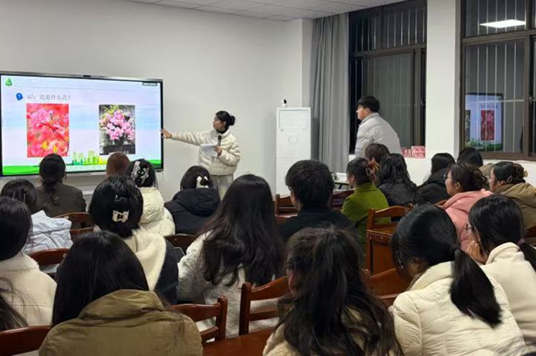 活动伊始,主持人通过“逛三园——植物园”趣味互动游戏开场,在轻松欢快的氛围中唤醒大家的自然感知与植绿护绿意识。随后,同学们共同观看了植物科普趣味视频,通过生动直观的影像画面,系统了解了植物叶片的生理功能、绿植日常养护的基础技巧等知识内容,沉浸式学习绿植培育相关常识。视频观看完毕后,现场随即开展绿色知识问答环节,通过围绕视频中的科普知识点接连提问,同学们踊跃举手、积极抢答,在一问一答的互动中进一步巩固所学内容,现场应答声、喝彩声交织,气氛持续高涨、十分活跃。