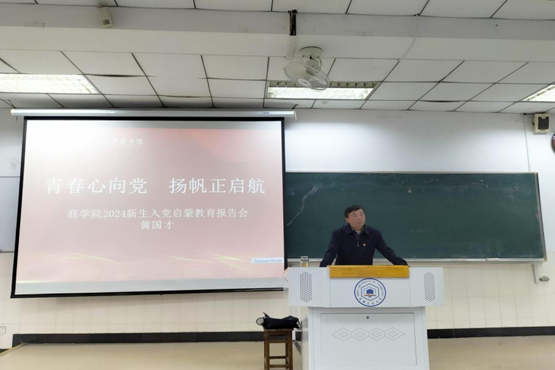为加强新生理想信念教育,帮助新生正确认识中国共产党、了解党的历史、端正入党动机,10月28日下午,商学院在东教一阶102教室举办2024新生入党启蒙教育报告会,校关工委黄国才老师担任此次主讲人。